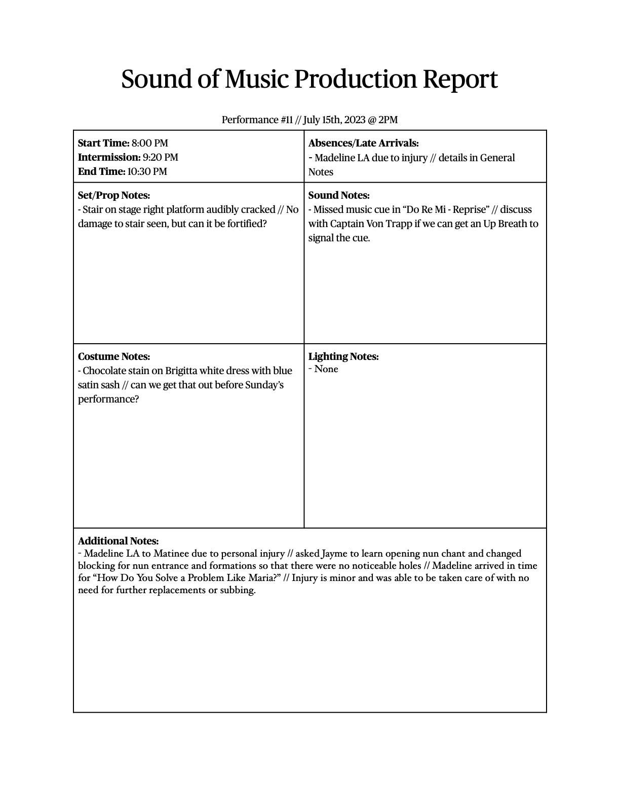 Production Report Example